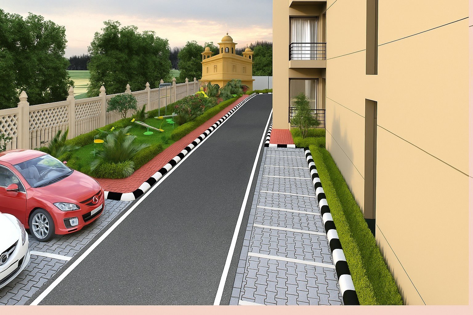 - Ample car parking and wide internal roads